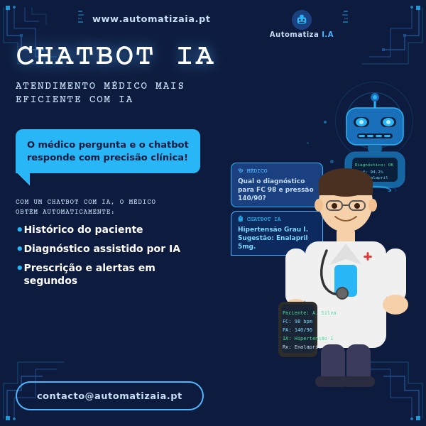Chatbot com IA que agenda, confirma e lembra os seus pacientes automaticamente. Sem intervenção humana. Sem horas extra.